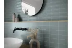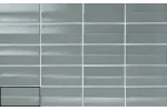 Arka Ona Steel 5,8x11,6 cm to szaro-zielona płytka gresowa ścienna typu cegiełka trójwymiarowa o satynowej powierzchni.