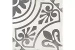 Płytka Avenue Decor Black Lys 18,7x18,7cm to wzorzysta płytka gresowa o matowej powierzchni z wzorem czarno-białym. Jest to środkowy element wzoru Avenue Decor Black na który składają się Avenue Decor Black Angle, Avenue Decor Black Edge, Avenue Decor Black Linked, Avenue Decor Black Lys i Avenue Decor Black Paper Poetry.
