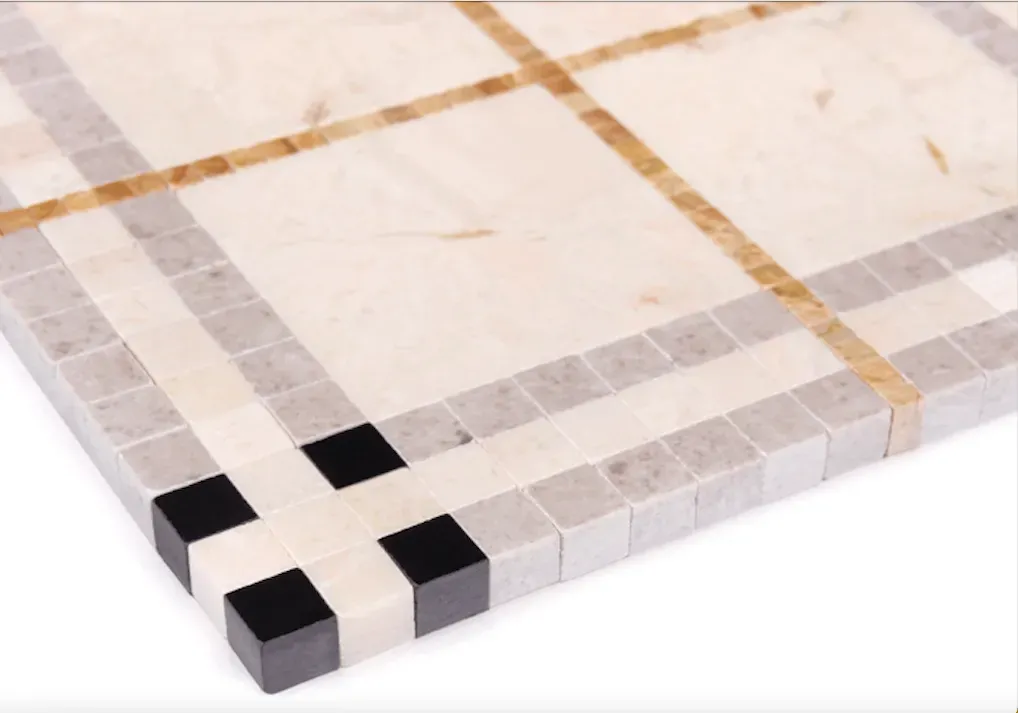 Beige Tartan 31x31, mozaika kamienna wykonana z naturalnego kremowego marmuru z wstawkami tworząca geometryczny wzór.