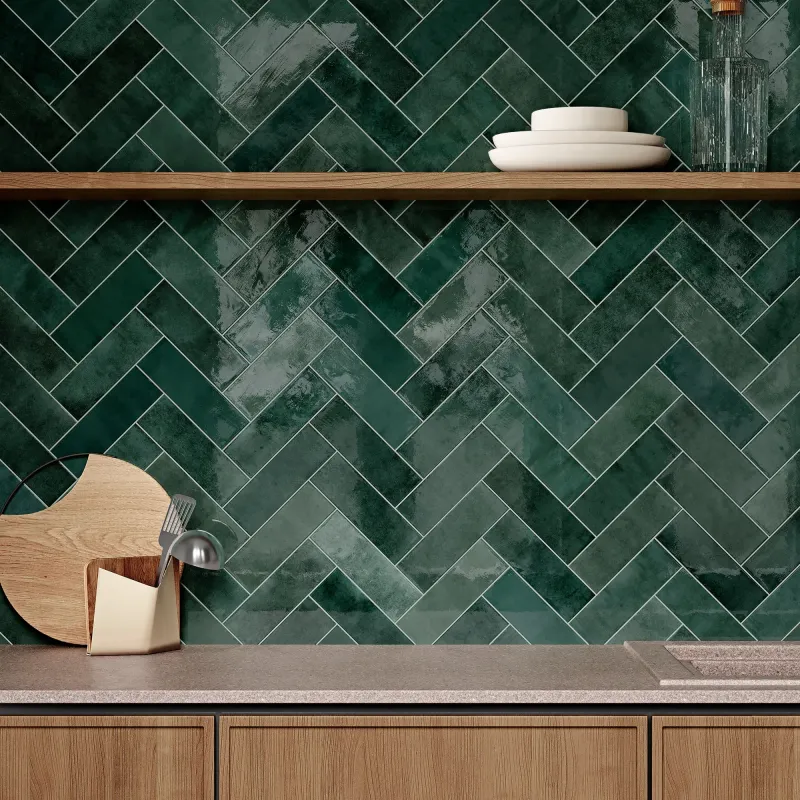 Pytka Bliss Green Gloss 6,5x20 cm to zielona płytka gresowa typu cegiełka o błyszczącej powierzchni.