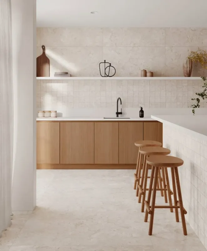 Kamień Campaspero to coś więcej niż surowiec naturalny, to materiał będący kulturową pamiątką. Jego stonowany wygląd, bogactwo graficzne i subtelne przejścia między bielą a delikatną szarością, przeplatane charakterystycznymi żyłkami i śladami skamieniałości, od wieków niosą ze sobą poczucie solidności i równowagi. Dostępny w trzech kolorach: Almond migdałowy przywodzi na myśl ciepło bladych beżów i migdałowych tonów, które ujawniają się w niektórych naturalnych szlifach. Natural ucieleśnia najbardziej autentyczną i rozpoznawalną esencję Campaspero. Jego ciepły, neutralny odcień wiernie oddaje klasyczny wygląd kamienia. Grey oferuje bardziej miejską, nowoczesną interpretację Campaspero, wzmacniając jego szare niuanse, aby uzyskać głębię chromatyczną, zgodną ze współczesnymi trendami architektonicznymi i wnętrzarskimi. Cała kolekcja oferowana jest w formacie rektyfikowanym 60×120cm, 60x60cm i 32×62,5cm, projekt wyraża się poprzez prążkowany relief inspirowany współczesnością. Wyryte linie nadają powierzchniom dynamiki i ciągłości, tworząc efekt architektoniczny, który podkreśla poczucie nowoczesności i przyszłościowego designu.
