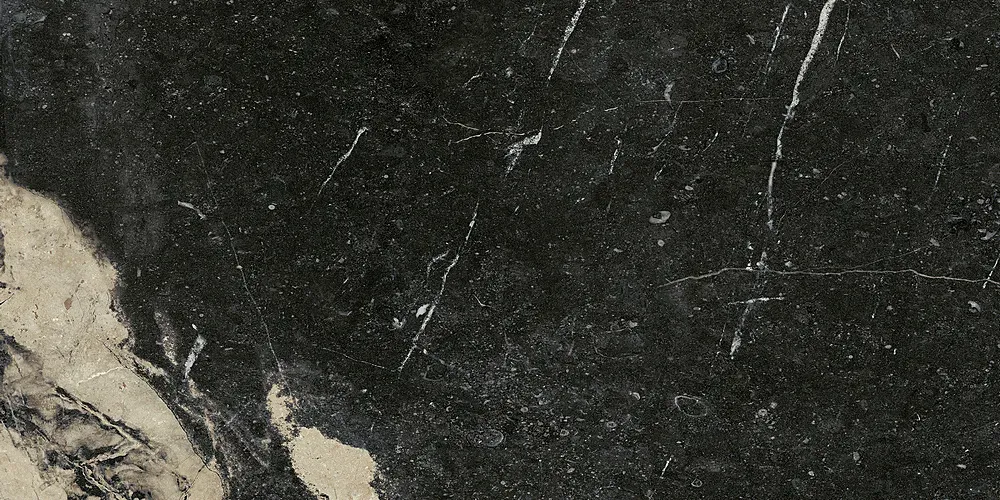 Contact Vogue Molato Rect. 60x120 cm to czarno-beżowa płytka gresowa imitująca kamień o matowej powierzchni.