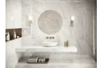Cristallo Bianco to najwyższej jakości kwarcyt, znany ze swojej półprzezroczystej, krystalicznej powierzchni oraz zdolności do równomiernego odbijania i rozpraszania światła. Delikatnie wyważone odcienie bieli i beżu współgrają z subtelnymi, ale wyrazistymi słojami, tworząc elegancką i ponadczasową estetykę. Ponadto sieć słojów nadaje materiałowi wyjątkową wizualną głębię, dzięki czemu doskonale nadaje się do wyrafinowanych projektów, których celem jest ukazanie prawdziwego piękna naturalnego kamienia. Kafle dostępne są w gamie rozmiarów 60x120cm, 120x120cm i 120x280cm o satynowym i polerowanym wykończeniu. Są to świetne płytki ścienne i podłogowe do łazienki czy kuchni ale również jako element aranżacji w holu czy salonie np. jako okładzina kominka.