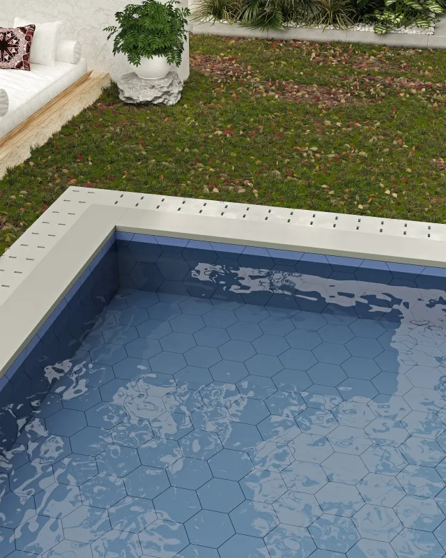 Płytka Croma Hex China 23x27 cm to niebieska płytka gresowa w kształcie sześciokąta imitująca Cotto.
