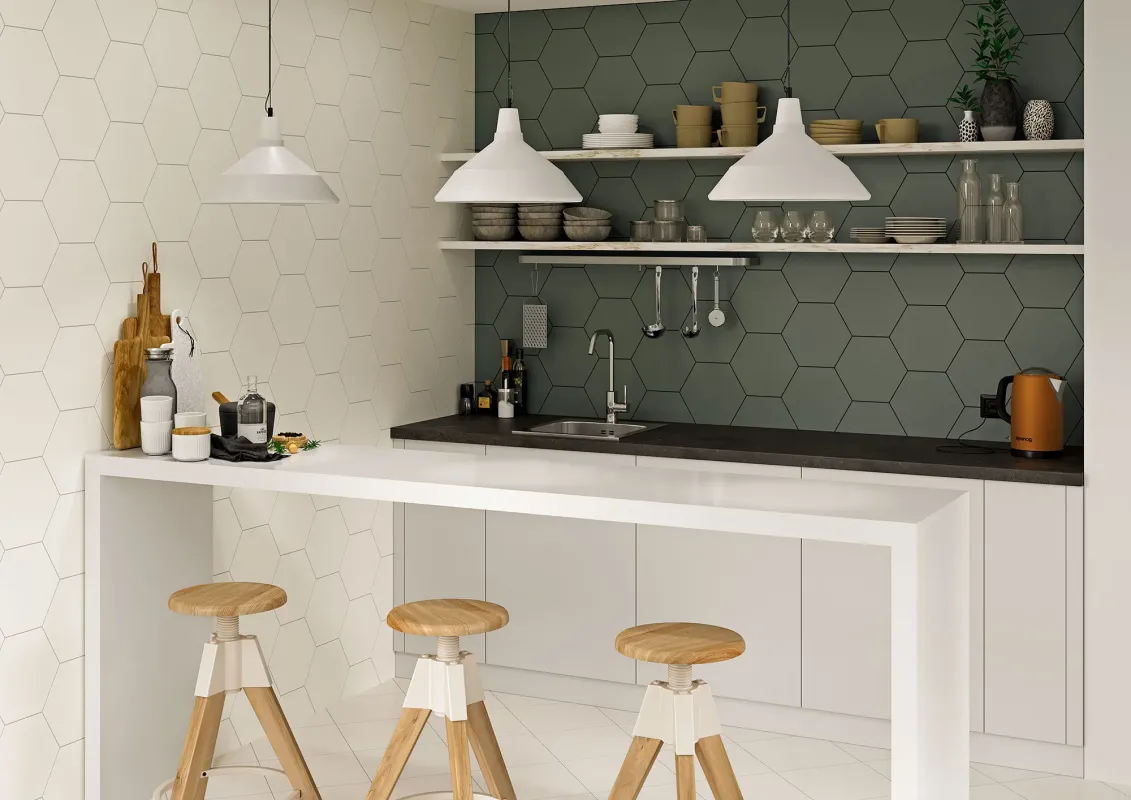Płytka Croma Hex Olympic 15x17,3 cm to kremowa płytka gresowa w kształcie sześciokąta imitująca Cotto.