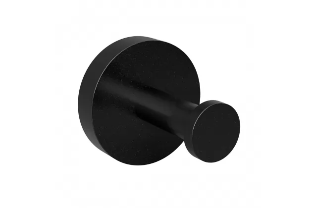 Okrągły czarny hak Dark, wykonany z mosiądzu powlekanego czarną półmatową powłoką.