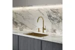 Dozownik mydła w płynie z serii Modern Project w kolorze mosiądz szczotkowany.