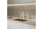 Dozownik mydła w płynie z serii Modern Project w kolorze złoty szczotkowany.