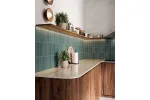 Pytka Gelato Matcha Gloss 6,5x20 cm to zielona płytka ścienna typu cegiełka o błyszczącej powierzchni.