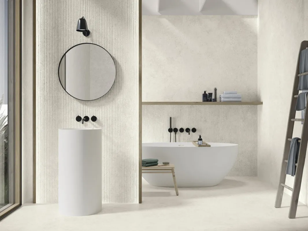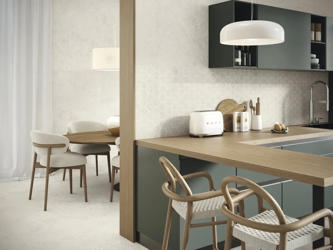 Kolekcja Kyoto uosabia istotę ciepłego minimalizmu, rosnącego trendu w aranżacji wnętrz, który łączy formalną prostotę z materiałami emanującymi spokojem, równowagą i komfortem. Zainspirowana włoskim wapieniem, kolekcja charakteryzuje się delikatną i elegancką grafiką, która tworzy wrażenie wizualnego spokoju i idealnie nadaje się do projektowania przytulnych przestrzeni. Jej spokojna estetyka zachęca do kontemplacji i oferuje dużą swobodę w aranżacji. Kyoto działa jak czyste płótno, harmonizując z innymi materiałami i stylami, łagodząc ozdobne aranżacje i wzmacniając spójność projektów. Jej subtelne piękno sprawia, że idealnie nadaje się na blaty, fasady lub fronty kuchenne, gdzie każdy detal przyczynia się do integracji całości. Płytki gresowe dostępne są w szerokiej gamie rozmiarów od 120x120cm ,60x120 po 90x90cm i 60x60cm.