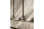 Levante to spotkanie siły natury z wizją projektu, wiatr przejmuje rolę projektanta.Wiatr kształtuje, modeluje i eksponuje pomiędzy gładkimi klifami a krystalicznie czystym morzem. Dostępne trzy kolory Pure, Cream i Greige w formatach 120x120cm, 60x120cm i 60x60cm. Pure przenika najgłębszą esencję wody. Transparentny materiał o zróżnicowanych, delikatnych przejściach barwnych interpretuje kamień przeniknięty światłem, celebrując czystość natury. Krem nawiązuje do długotrwałej erozji kamienia. Ciepłe, nieregularne niuanse nadają materiałowi trójwymiarowy efekt, uzyskany dzięki współgraniu pełnych i pustych powierzchni, przeplatanych harmonijnymi wariacjami. Greige interpretuje piękno naturalnych wzorów fal na piasku. Delikatnie falująca powierzchnia oddaje spokój krajobrazu i spokojny powiew wiatru.