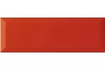 Loft Rojo 10x30 cm to czerwona płytka ścienna typu cegiełka o fazowanych krawędziach i błyszczącym wykończeniu.