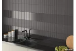 Płytka Lumina Rivia Oyster 6x24,6 cm to czarna płytka ścienna o błyszczącej powierzchni w kształcie cegiełki.