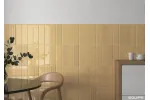 Płytka Lumina Rivia Rattan 6x24,6 cm to żółta płytka ścienna o błyszczącej powierzchni w kształcie cegiełki.