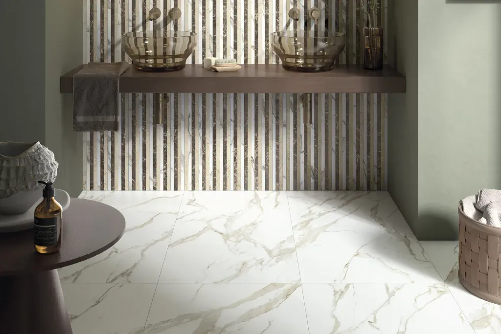 Uniwersalne i ponadczasowe piękno marmuru zajmuje centralne miejsce w kolekcji Majestic: wszechstronnej kolekcji starannie dobranych faktur i kolorów, która wzbogaca nowoczesne wnętrza nutą codziennego luksusu. Asortyment uzupełniają liczne mozaiki i dekoracje o wielobarwnych, geometrycznych wzorach, w tym linearny urok dekoracji Noblesse, tworząc przestrzenie łączące elegancję z osobowością. Dostępne formaty 60x120cm i 60x60cm oraz 30x30cm dla dekorów i mozaiki tych płytek gresowych zapewniają wszechstronność i swobodę tworzeni indywidualnych wzorów.