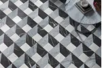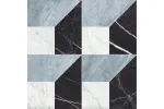 Majestic Piramide Bianco/Blu/Nero Rekt. 60x120 cm to wzorzysta płytka imitująca marmur o satynowej powierzchni.