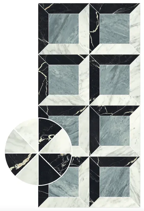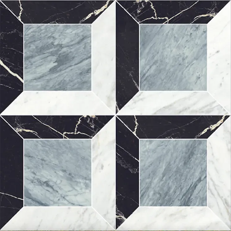 Majestic Prestige Bianco/Blu/Nero Rekt. 60x120 cm to wzorzysta płytka imitująca marmur o satynowej powierzchni.