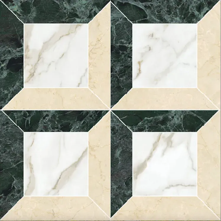 Majestic Prestige Oro/Verde/Crema Rekt. 60x120 cm to wzorzysta płytka imitująca marmur o satynowej powierzchni.