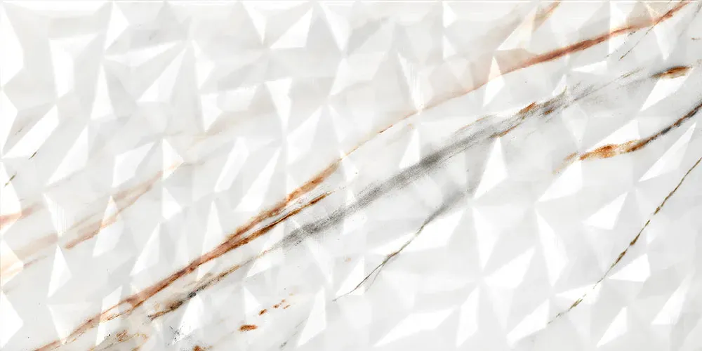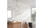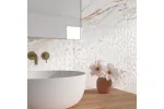 Płytka Marmol Gold Decor 25x50 cm to biała płytka ścienna imitująca marmur o złotym użyleniu i błyszczącym wykończeniu.