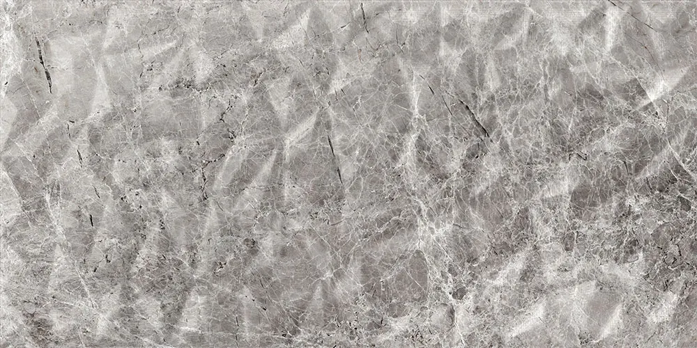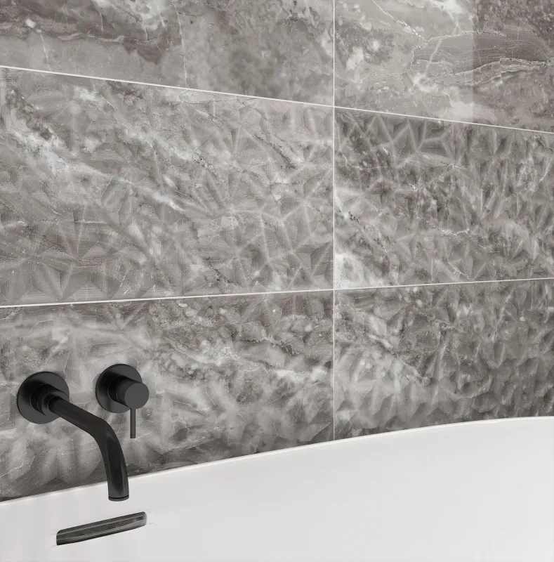 Płytka Marmol Gris Decor 25x50 cm to szara płytka ścienna imitująca marmur o złotym użyleniu i błyszczącym wykończeniu.
