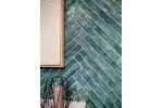 Menorca Ocean 5x50 cm to niebieska płytka gresowa typu cegiełka o błyszczącej powierzchni.