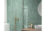 Płytka Miyako Oil Blue Gloss 5x15 cm to zielona płytka gresowa ścienna o błyszczącej powierzchni w kształcie cegiełki.