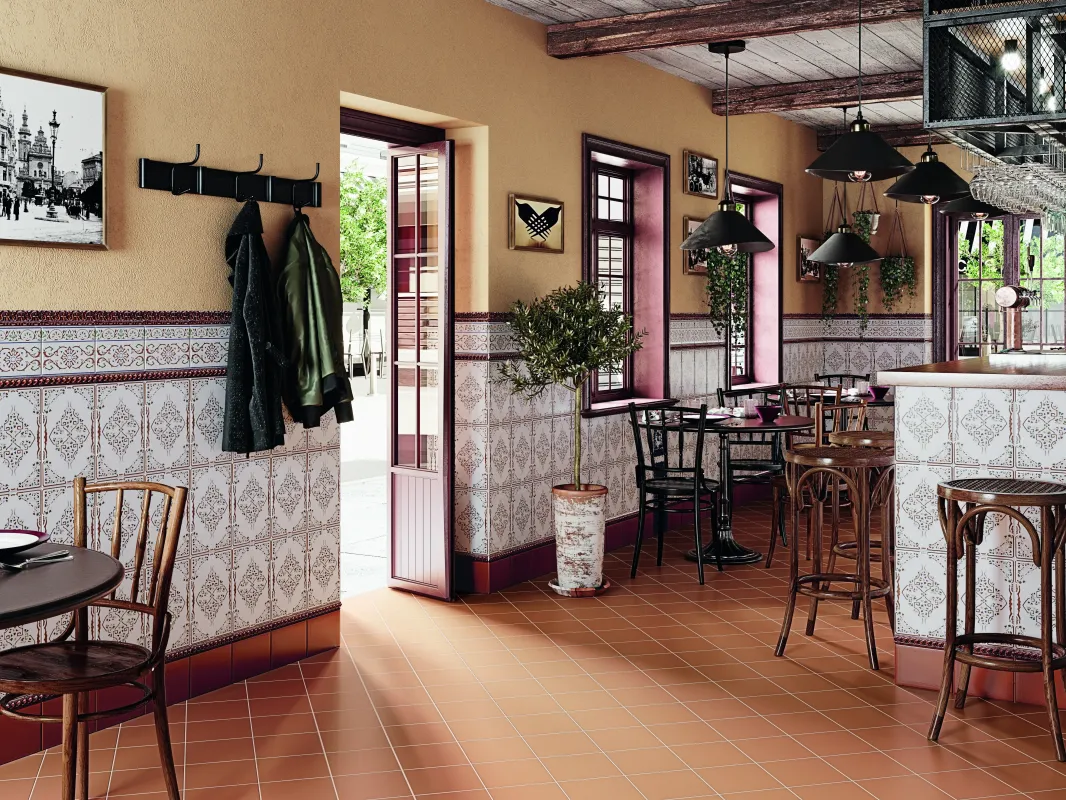 Kolekcja Cartuja z hiszpańskiej fabryki Ribesalbes to płytki wzorzyste na czerwonym podkładzie. Płytka posiada na białym tle wzór można powiedzieć orientalny w kolorach niebieskim i dodatkami w zieleni. Wzór jest drobnym i delikatny ale bardzo dekoracyjny i stanowi ciekawy element aranżacji szczególnie w korytarzu, holu lub miejscach intensywnego użytkowania pomoże utrzymać ściany w czystości układając płytki w stylu lamperii. W skład wchodzą wzorzysta płytka Cenefa Cartuja 15×20cm, niebieska płytka Liso Azul Valencia 15×20cm, listwy wykończeniowe ozdobione Moldura Azul Valencia 5×20cm, Moldura Barroca Azul Valencia 5×20cm i Listelo Cordon Azul Valencia 3×20 cm jak i listwy gładkie Moldura Plana Azul Valencia 5×20cm i Listelo Plano Azul Valencia 3×20cm.
