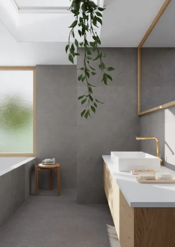 Moonstone łączy w sobie moc geologicznej historii z pragnieniem wniesienia współczesnej elegancji do przestrzeni, które zamieszkujemy. Zainspirowana historycznymi europejskimi wapieniami karbońskimi, ta nowa kolekcja oddaje elegancję głębokiego, organicznego, ciemnego odcienia o głębokim i autentycznym charakterze. Matowe wykończenie podkreśla mikrodetale, a subtelna cyfrowa aplikacja na nowo interpretuje strukturę skamieniałości. Rezultatem jest kompaktowa powierzchnia, która subtelnie przechwytuje światło, oferując wyrafinowany charakter i elegancki wygląd, który jest jednocześnie naturalny i nowoczesny. Moonstone Dark to organiczna czerń, która otula wnętrza wyrafinowaniem. Moonstone Grey to zrównoważona szarość, która harmonizuje z każdym stylem. Jej wszechstronność pozwala na łączenie jej z drewnem, metalem lub naturalnymi fakturami, dodając wizualnego bogactwa bez utraty poczucia spokoju i elegancji. Moonstone Silver wietlista szarość, która podkreśla przejrzystość i przestronność. Moonstone Beige – Ciepły, przytulny odcień, który przywołuje komfort i dobre samopoczucie. Idealny do łączenia naturalności z wyrafinowaniem, tworząc zrównoważone, otulające wnętrza. Kolekcja wzbogacona jest o spójne podejście dekoracyjne w dwóch formatach: 60×120 rektyfikowany i 32×62,5. Powierzchnie charakteryzują się nowoczesnym, prążkowanym reliefem, gdzie ryte linie wprowadzają dynamikę i ciągłość, tworząc efekt architektoniczny, który wzmacnia poczucie nowoczesności i przyszłościowego designu.