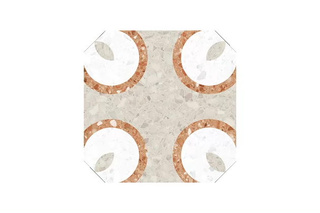 Octogono Tolone Beige 20x20cm to wzorzysta płytka gresowa ośmiokątna o matowej powierzchni. Do uzupełnienia ściętych rogów sugerujemy płytki Taco Bastia i Taco Dome 4x4cm.
