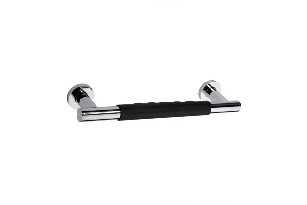 Omega uchwyt wannowy 300mm z czarną gumą z mosiądzu z optyką chromowaną i mocowany na stałe do ściany.