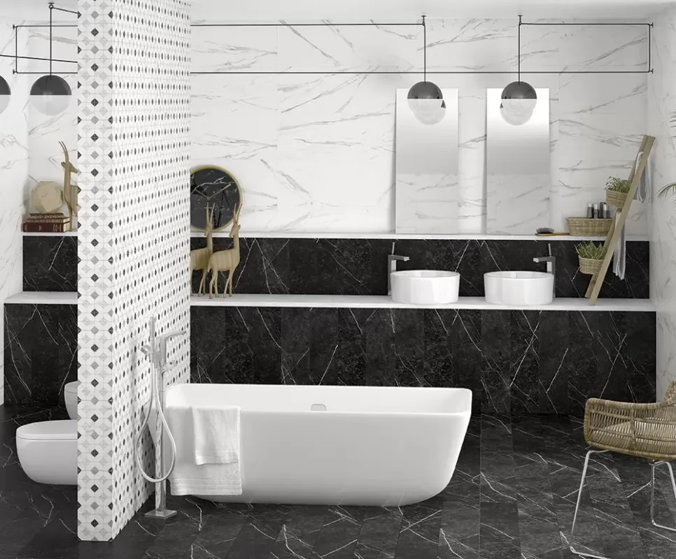 Projektując wnętrza z użyciem płytek wzorzystych Arcana, warto pamiętać, że wzorzyste powierzchnie najlepiej łączyć z prostymi elementami, aby uniknąć efektu przytłoczenia. Jasne motywy optycznie powiększają przestrzeń, a intensywne wzory sprawdzają się w dużych pomieszczeniach. Płytki świetnie komponują się z naturalnymi materiałami, takimi jak drewno, szkło i metal, a ich zestawienie z minimalistycznym wystrojem pozwala osiągnąć efekt kontrastu. Dzięki odpowiedniemu rozmieszczeniu wzorów można nadać wnętrzu rytm i spójność, co doceniają zarówno projektanci, jak i użytkownicy przestrzeni.