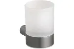 Pojemnik Grino na szczoteczkę szklany wykonany z mosiądzu i dekoracyjnym szlifem, charakteryzuje się wykończeniem matowym w kolorze grafitu.