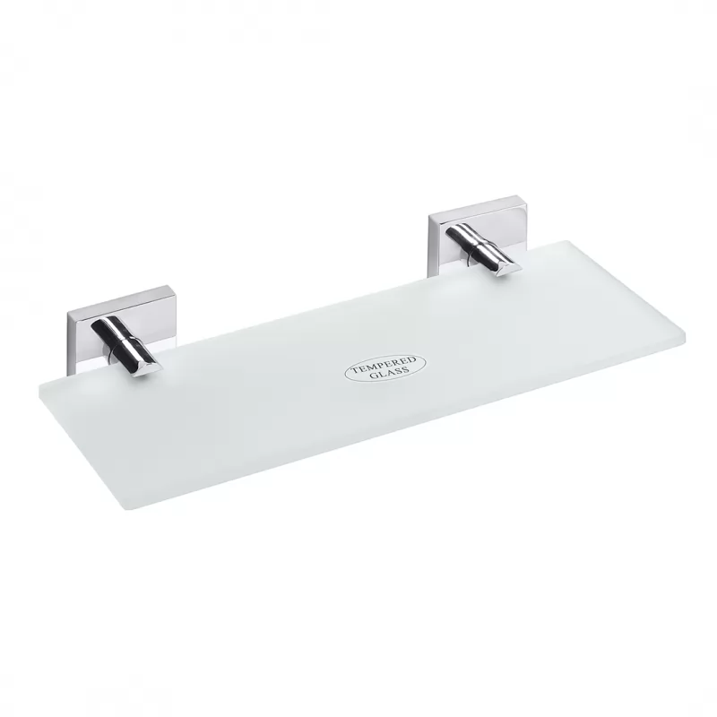 Półka szklana 300mm wisząca Beta wykonana z mosiądzu z optyką chromowaną i mocowany na stałe do ściany.