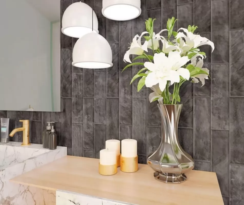 Pytka Pottery Antracite 7,5x30 cm to antracytowa płytka ścienna typu cegła o matowej powierzchni.