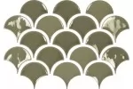 Smiles Victorian Green 12x12,5 cm to zielona płytka ścienna typu rybia łuska o błyszczącej lekko nierównej powierzchni.
