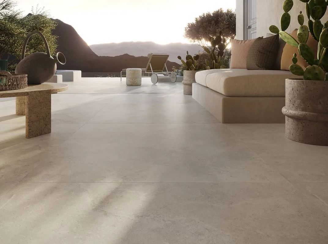 Solaris Ostuni Honed Ret. 120x120 cm to beżowa płytka gresowa imitująca kamień o powierzchni matowej.