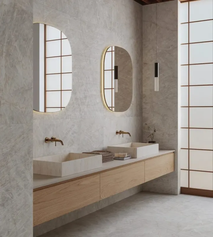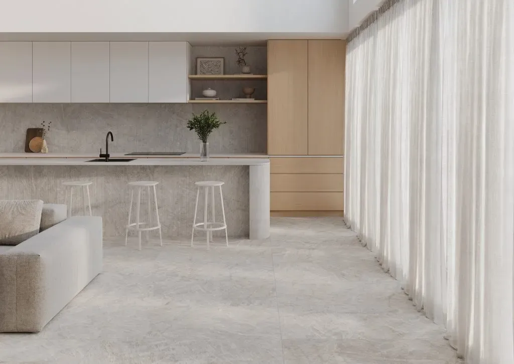 Kolekcja Taj Mahal marki GAYAFORES na nowo odkrywa elegancję naturalnego marmuru, oferując powierzchnie o majestatycznym, wyrafinowanym pięknie, łączące styl i przyjemną w dotyku fakturę. Zainspirowana brazylijskim kwarcytem Taj Mahal, kolekcja ta wyróżnia się spokojną jasnością i dyskretną elegancją: perłowo-krystaliczne tło zdobione subtelnymi szarymi żyłkami i wzorami przypominającymi chmury, które odbijają światło, dodając głębi i przywodząc na myśl delikatność i ekskluzywność prawdziwego klejnotu mineralnego. Matowe wykończenie otula powierzchnię aksamitną miękkością. Światło delikatnie sunie po materiale, podkreślając subtelne perłowe niuanse uzyskane dzięki cyfrowej aplikacji. Kolekcja jest dostępna w dwóch starannie dobranych odcieniach, aby uchwycić bogactwo i różnorodność naturalnego kwarcytu: Natural i Pearl. Taj Mahal jest dodatkowo wzbogacona o tę samą propozycję dekoracyjną w dwóch formatach: 60×120 rektyfikowany i 32×62,5 cm. Powierzchnie charakteryzują się nowoczesnym, prążkowanym reliefem, gdzie ryte linie tworzą dynamikę i ciągłość, tworząc efekt architektoniczny, który wzmacnia poczucie nowoczesności i awangardowej elegancji w każdej przestrzeni.