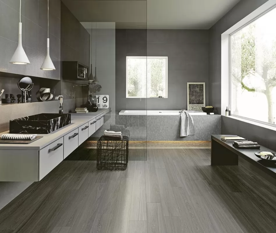 Deski Treverkview proponowane są w 9 różnych kolorach począwszy od jasnych beży po szarości z rektyfikowanymi krawędziami o rozmiarze 20x120 cm.