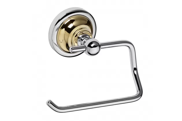 Uchwyt na papier bez klapki montowana do ściany z kolekcji Retro Chrom/Gold. Wykonana z mosiądzu, z powłoką z chromu i złota.