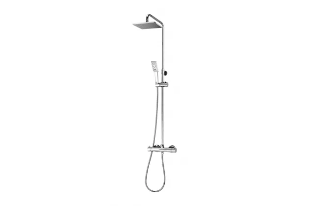 Uni termostatyczny system prysznicowy natynkowy w kolorze chrom.