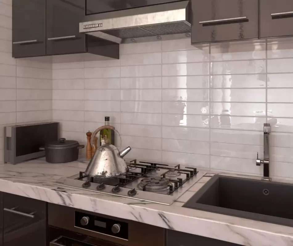 Pytka Velvet Glacier Gloss 6x25 cm to biała płytka ścienna typu cegiełka o błyszczącej powierzchni.