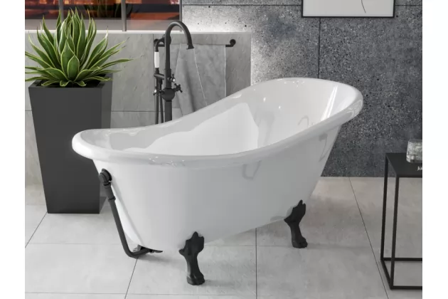 Wanna wolnostojąca Otylia biała 160x77 180L z nogami w kolorze czarnym.
