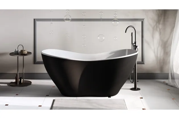 Wanna wolnostojąca Viya Matt B&W160 x 70 x 170 L w zestawie z odpływem klik-klak w kolorze chrom.