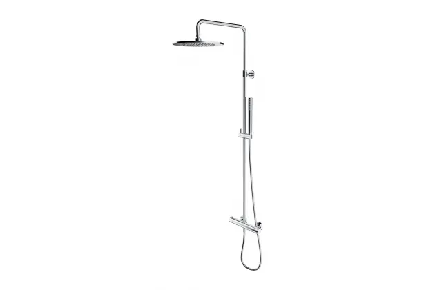 Y termostatyczny system prysznicowy natynkowy w kolorze chrom.