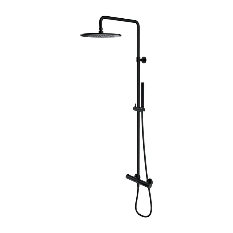 Y termostatyczny system prysznicowy natynkowy czarny.
